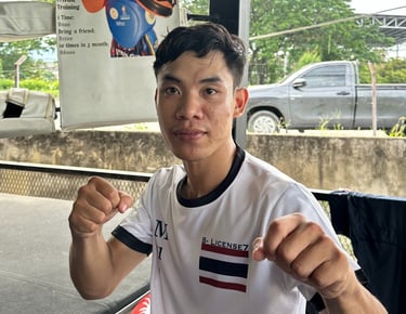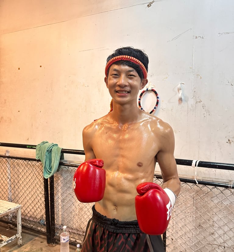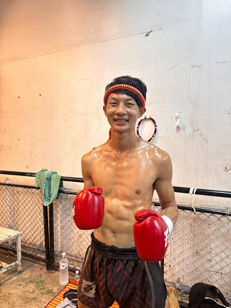 Kru Bas 25 years old, is an undergraduate student at a sports university with over 50 Muay Thai fight experiences. He trains diligently and teaches earnestly, committed to helping students make progress and enjoy their Muay Thai training. Bas's professional background and practical experience allow him to provide systematic and practical guidance in his teaching.